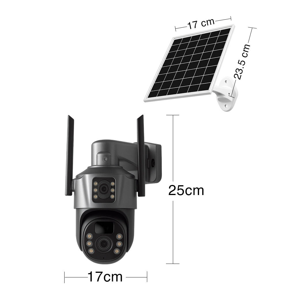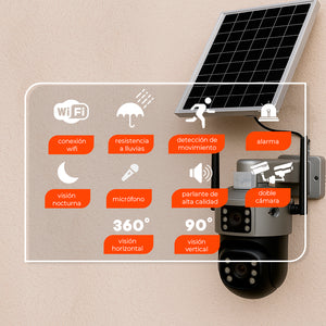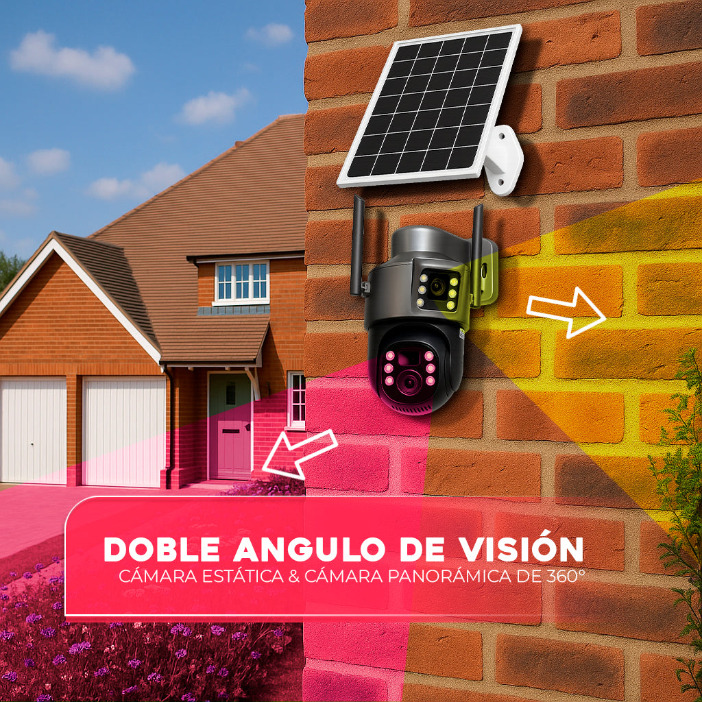 Cámara Solar Dual Inteligente – Vigilancia Avanzada con Luz, Sirena y Modo Sleep